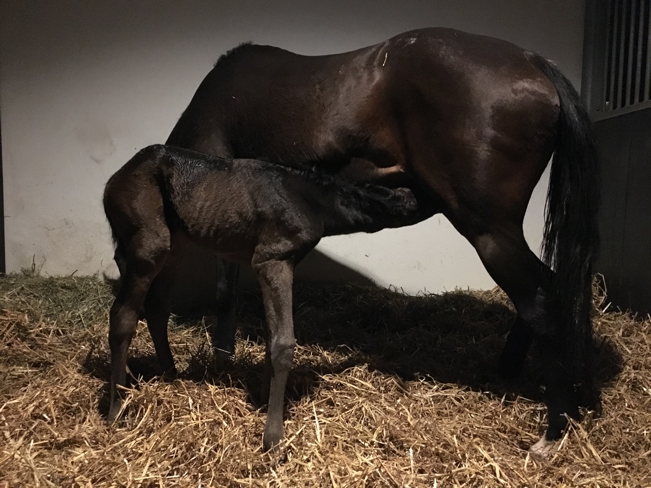Just before midnight LA REINE NOIR (Rainbow Quest-La Felicita) foaled the last foal of the season at SCHLOSSGUT ITLINGEN, a brown colt by MAXIOS. The placed sister to Gr.1 winner LADY MARIAN has already a very good yearling by MAXIOS, named LENNOX. She is booked to SIYOUNI for this season.In LAVIRCO the grandsire of MAXIOS, the sole Triple Crown winner in Germany KONIGSSTUHL has produced a Derbywinner with this fantastic damline. LA VIRGINIA, the dam of LAVIRCO, is the own sister to LA CONCORDIA, the 2nd dam of LA REINE NOIR, whom STAUFFENBERG BLOODSTOCK purchased privately from Walther J Jacobs, the founder of Fahrhof in 1995, before LAVIRCO had raced and became Champion 2yo and 3yo.