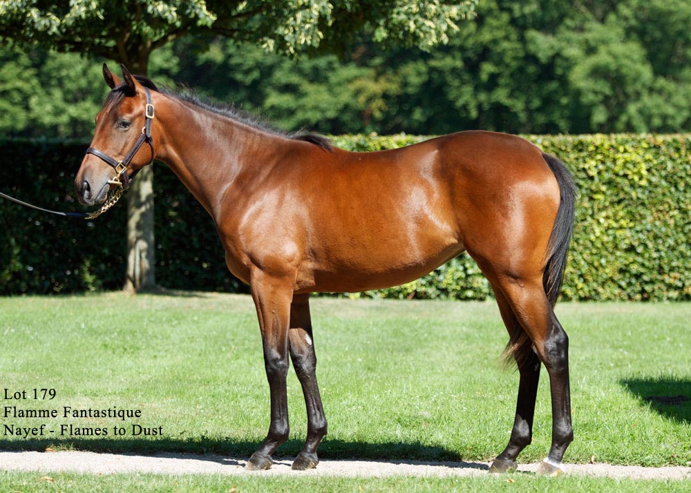 Her second is the 2yo filly FLAMME FANTASTIQUE by NAYEF. Purchased by Angus Gold on behalf of Sheikh Hamdan al Maktoum at the BBAG Yearling Sale, she is in training with William Haggas in Newmarket.
